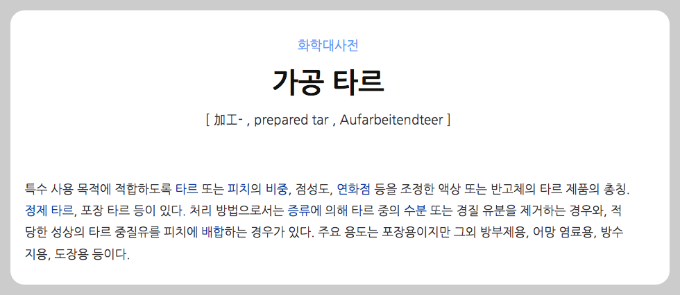 1. 화학 사전에서 말하는 가공 타르란?