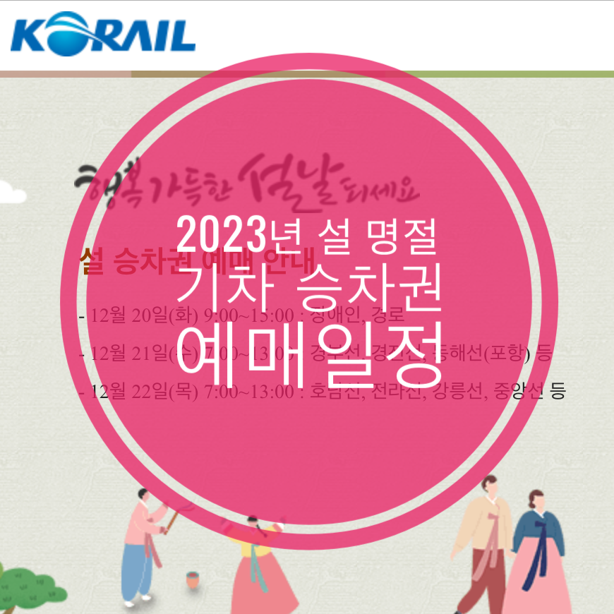 2023년 첫번째 명절인 설 기차표 예매 일정이 나왔습니다.